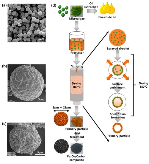 논문 해외 국제전문학술지(SCI급) Microalgae-Templated Spray Drying for Hierarchical and Porous Fe3O4/C Composite Microspheres as Li-ion Battery Anode Materials