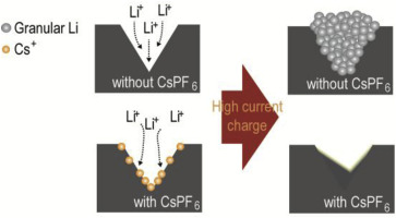 논문 해외 국제전문학술지(SCI급) Suppression of dendrites and granules in surface-patterned Li metal anodes using CsPF6
