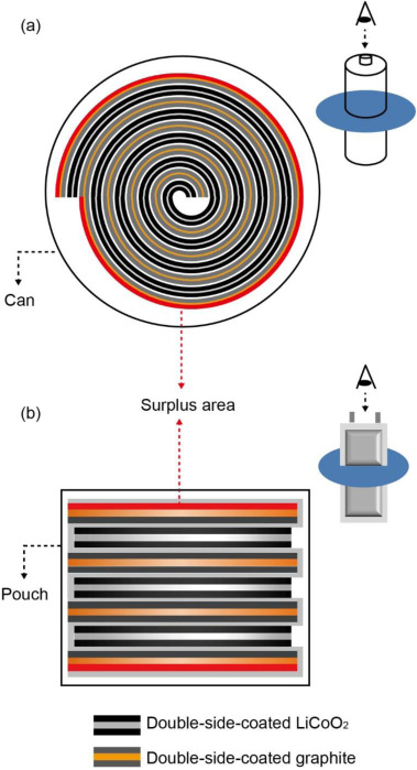 In order to investigate the effect of back-side coating of cathodes and anodes upon electrochemical performances of lithium-ion batteries (LIBs), four different pouch-type lithium cobalt oxide (LiCoO2, LCO)/graphite unit cells with different coating conditions are prepared and compared in a systematic manner. Their electrochemical performance, in terms of Coulombic efficiency, capacity realization, capacity retention ability, and rate capabilities, is investigated. From the results, we confirm an opposing relationship existing between back-side-coated cathodes and anodes, in that the coated cathodes provide improved cell performance, while the coated anodes impede it. This is attributed to the fact that, as is generally understood, cathodes act as noble lithium (Li) ion suppliers for LIBs, while anodes consume a large portion of Li ions to form surface layers during the first charging process. Furthermore, we also confirm that the magnitude of the back-side coating effect for LCO and graphite are somewhat different. The double-side-coated cathodes have a notable positive effect on cell performances in contrast to the negative effect seen with the double-side-coated anodes. As a result, unit cells employing double-side-coated cathodes with single-side-coated anodes show the best performance, followed by those based on double-side-coated cathodes with double-side-coated anodes rather than single-side-coated cathodes with single-side coated anodes.