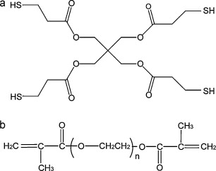 Highly ion-conductive gel polymer electrolyte (GPE) with mechanical flexibility is developed by incorporating liquid electrolyte into polymer films that are fabricated by initiator-free photopolymerization of poly(ethylene glycol) dimethacrylate (acrylate monomer) and pentaerythritol tetrakis (3-mercaptopropionate) (thiol monomer) blend. When UV is irradiated on the blend, the thiol monomers themselves produce radicals to initiate the polymerization. GPEs with 40–50 wt.% of thiol monomer content show mechanically free standing characteristics with sufficient flexibility. The ionic conductivity of the GPE reaches1.1 × 10−3 S cm−1 at 25 °C and is thus high enough to be applied for lithium secondary batteries. The GPE is electrochemically stable up to 4.4 V versus Li/Li+ and the unit cells consisting of LiCoO2/GPE/lithium metal show good cycling performance. This GPE is thus considered a good electrolyte candidate for future flexible and wearable lithium secondary batteries.