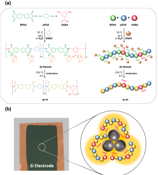 논문 해외 국제전문학술지(SCI급) Eco-Friendly Water-Processable Polyimide Binders with High Adhesion to Silicon Anodes for Lithium-Ion Batteries