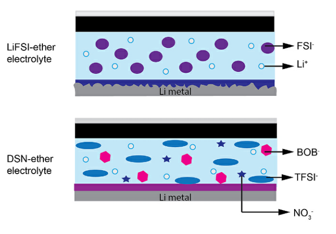 논문 해외 국제전문학술지(SCI급) Synergistic effects between dual salts and Li nitrate additive in ether electrolytes for Li-metal anode protection in Li secondary batteries