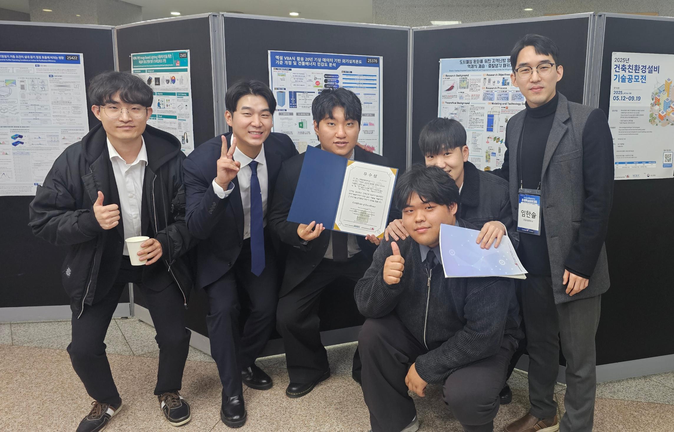 박광훈, 임성우 (BPES 학부연구생); 김찬희, 최형민, 문태랑 (학부생)이 한국건축친환경설비학회 주관 건축친환경설비기술공모전(Green Building Technology)의 공학기술 분야에서 “도시열섬 완화를 위한 지역난방 열원 기반 액체식 제습 · 증발냉각 패키지”의 주제로 우수상을 수상하였습니다.