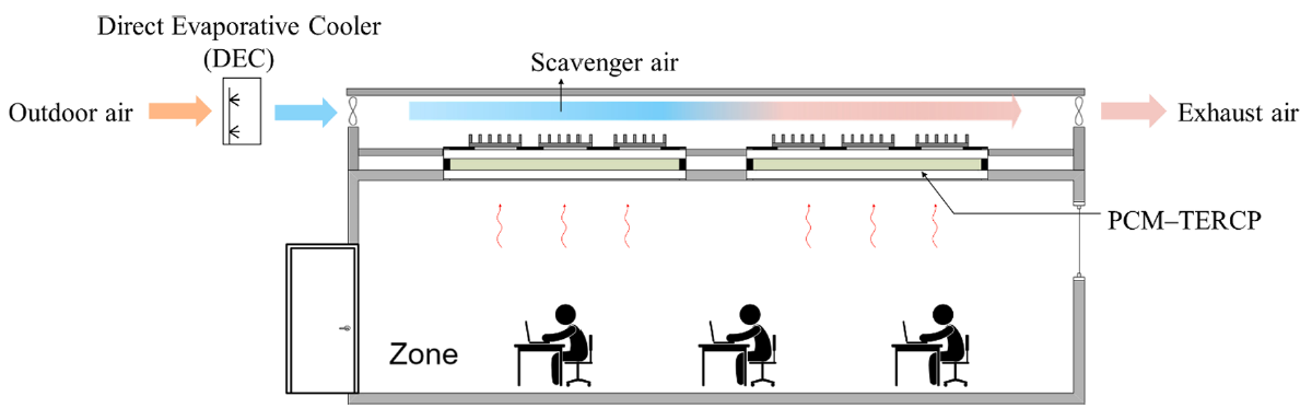Application of a phase change material to a thermoelectric ceiling radiant cooling panel as a heat storage layer