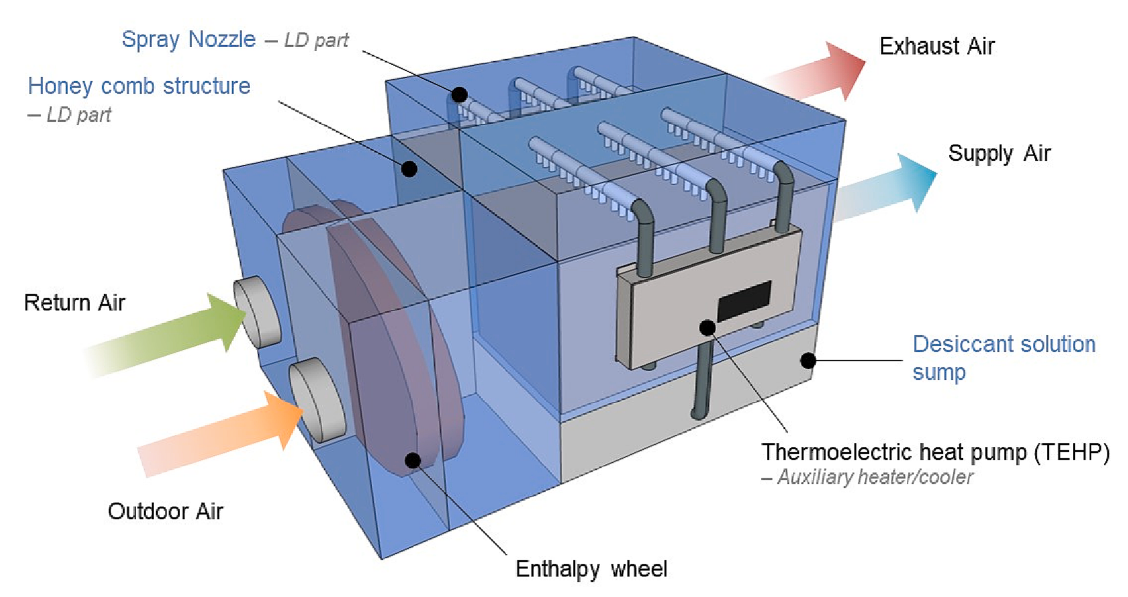 Thermoelectric module integrated fuel cell in a liquid desiccant-assisted air-conditioning system