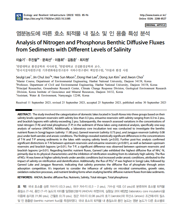 염분농도에 따른 호소 퇴적물 내 질소 및 인 용출 특성 분석