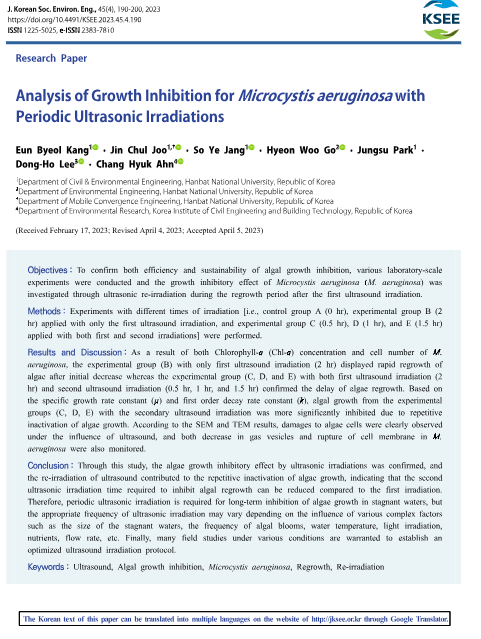 주기적인 초음파 조사에 따른 Microcytis aeruginosa의 성장억제 분석