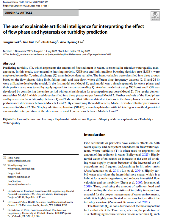 The use of explainable artificial intelligence for interpreting the effect of flow phase and hysteresis on turbidity prediction