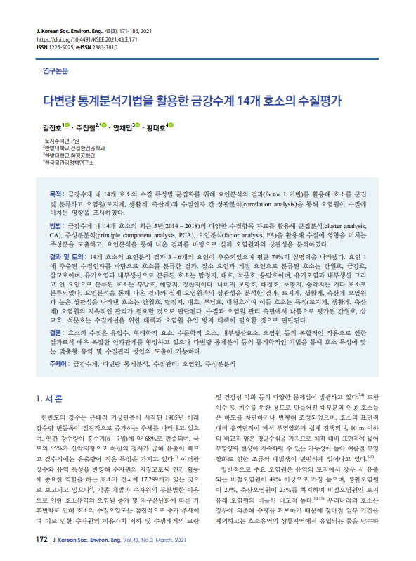 다변량 통계분석을 이용한 국내 15개 대규모 담수호의 수질 분석 및 Chl-a 예측