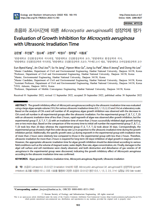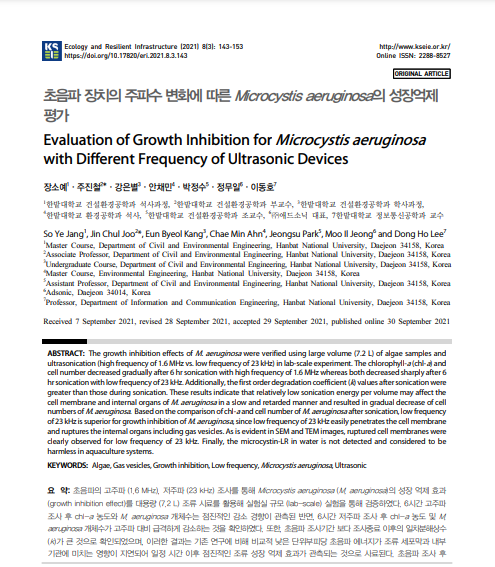 초음파 장치의 주파수 변화에 따른 Microcystis aeruginosa의 성장 억제 평가