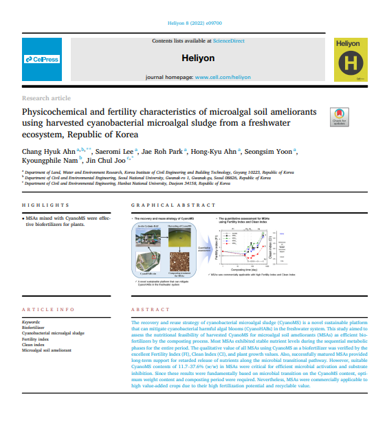 Physicochemical and fertility characteristics of microalgal soil ameliorants using harvested cyanobacterial microalgal sludge from a freshwater ecosystem, Republic of Korea