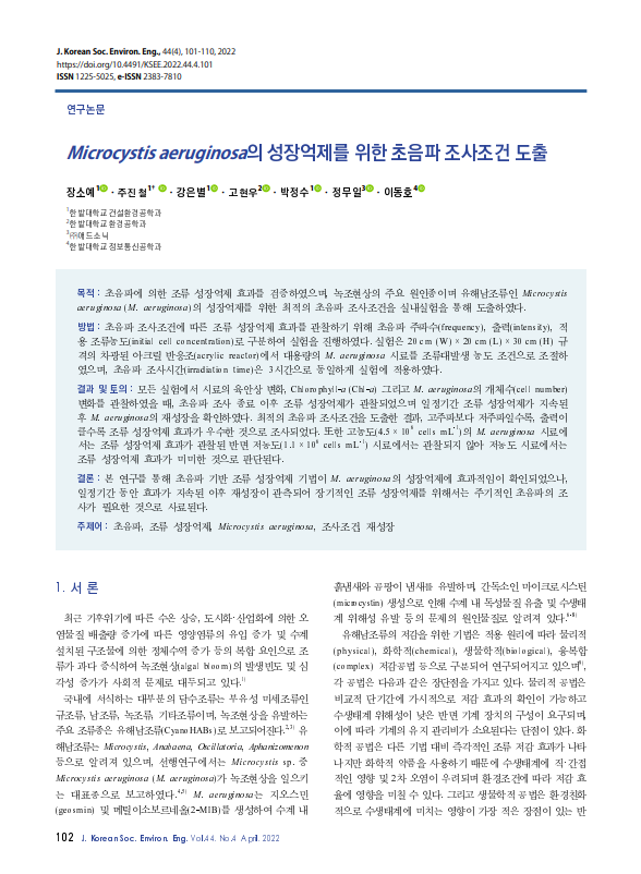 Microcystis aeruginosa의 성장억제를 위한 초음파 조사조건 도출
