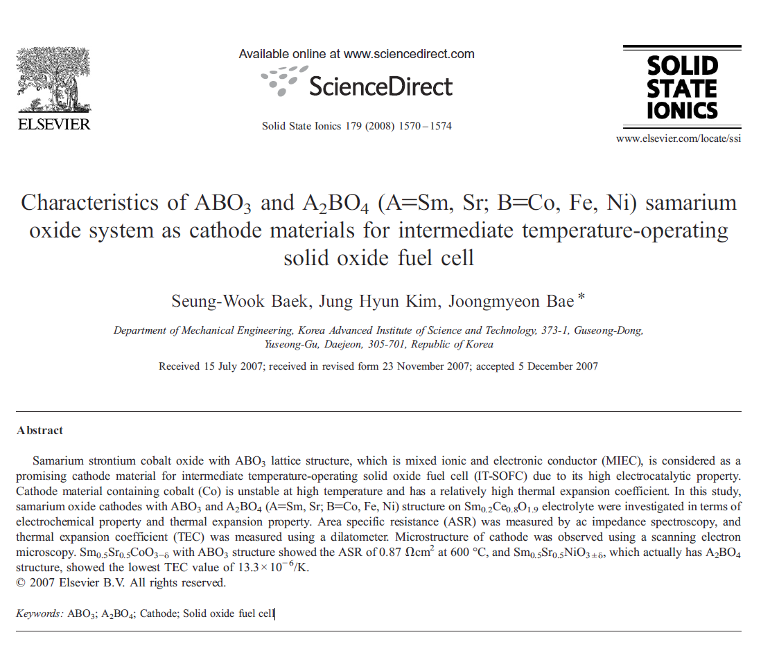 - Jung Hyun Kim, Yongmin Kim, Paul A Connor, John T. S. Irvine, Joongmyeon Bae, Wuzong Zhou