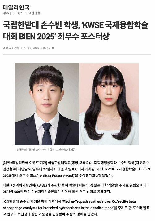 수상을 진심으로 축하하며, 앞으로의 연구 활동을 응원합니다!