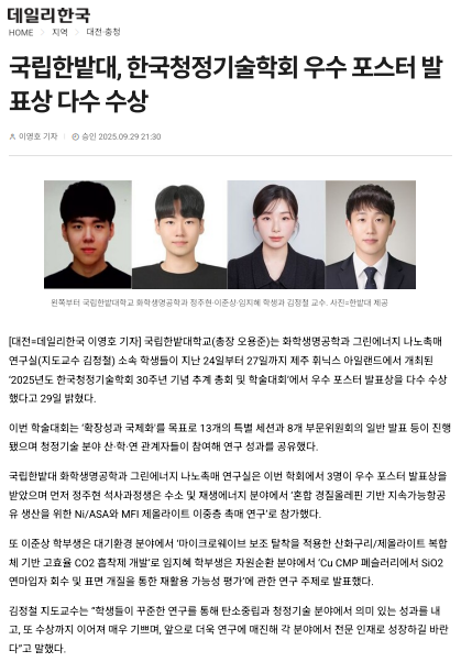 [2025.09] 한국청정기술학회 우수포스터 발표상 다수 수상