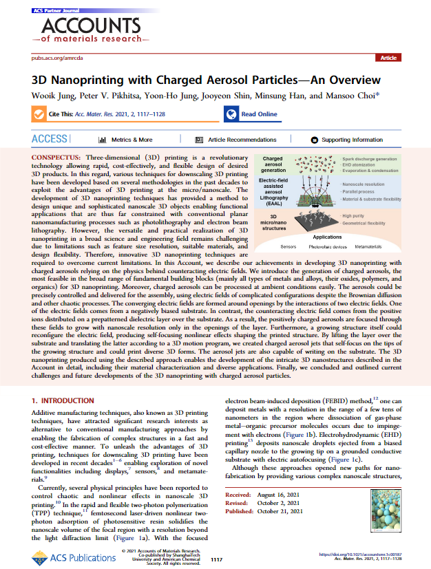 [Accounts of Materials Research] 3D Nanoprinting with Charged Aerosol Particles-An Overview