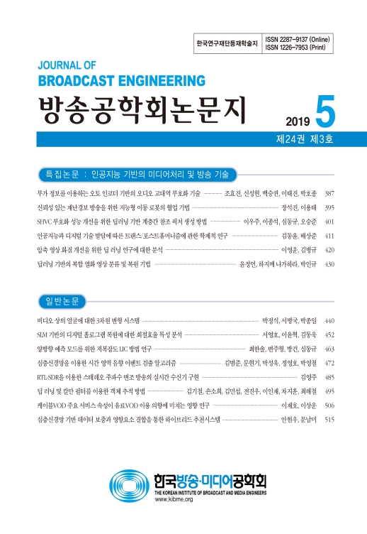 논문 국내 국내전문학술지(KCI급) 딥 러닝 및 칼만 필터를 이용한 객체 추적 방법