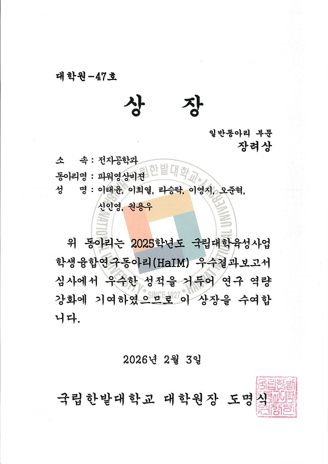 2025년 국립한밭대학교 우수지도상 수상