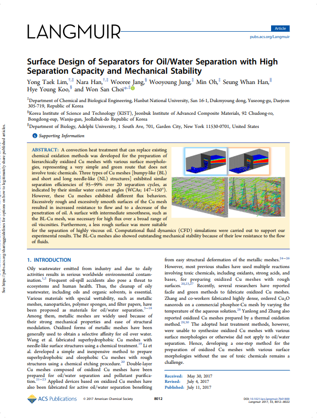 - Yong Taek Lim, Nara Han, Wooree Jang, Wooyoung Jung, Min Oh, Seung Whan Han, Hye Young Koo, and Won San Choi*