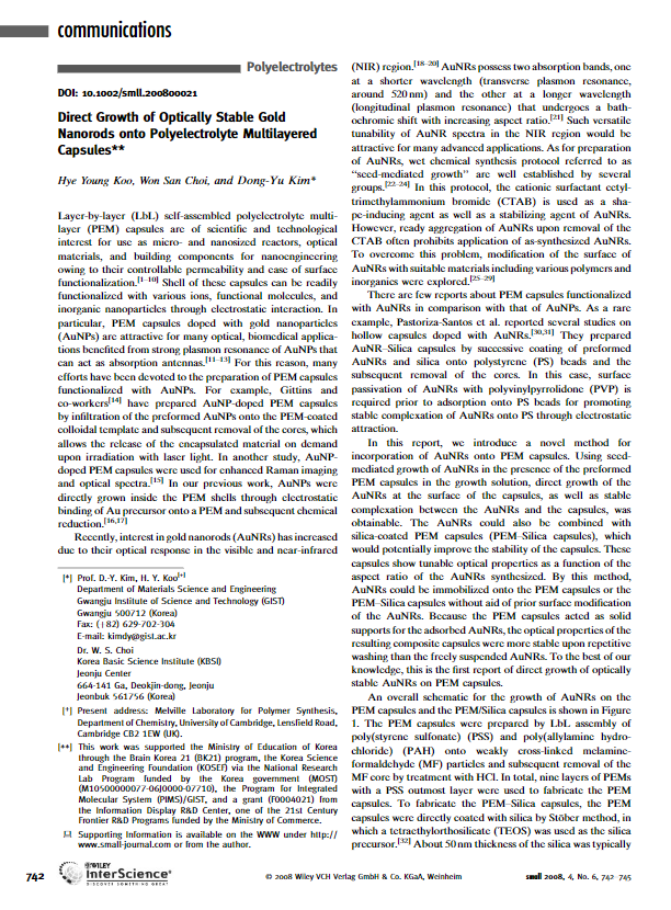 - Won San Choi, Hye Young Koo, Zhuang Zhongbin, Yadong Li, and Dong-Yu Kim*