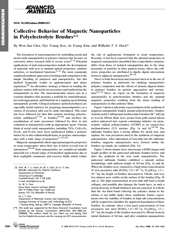 - Won San Choi*, Hye Young Koo, Wilhelm T.S. Huck*