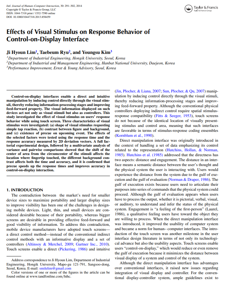 Effects of Visual Stimulus on Response Behavior of Control-on-Display Interface